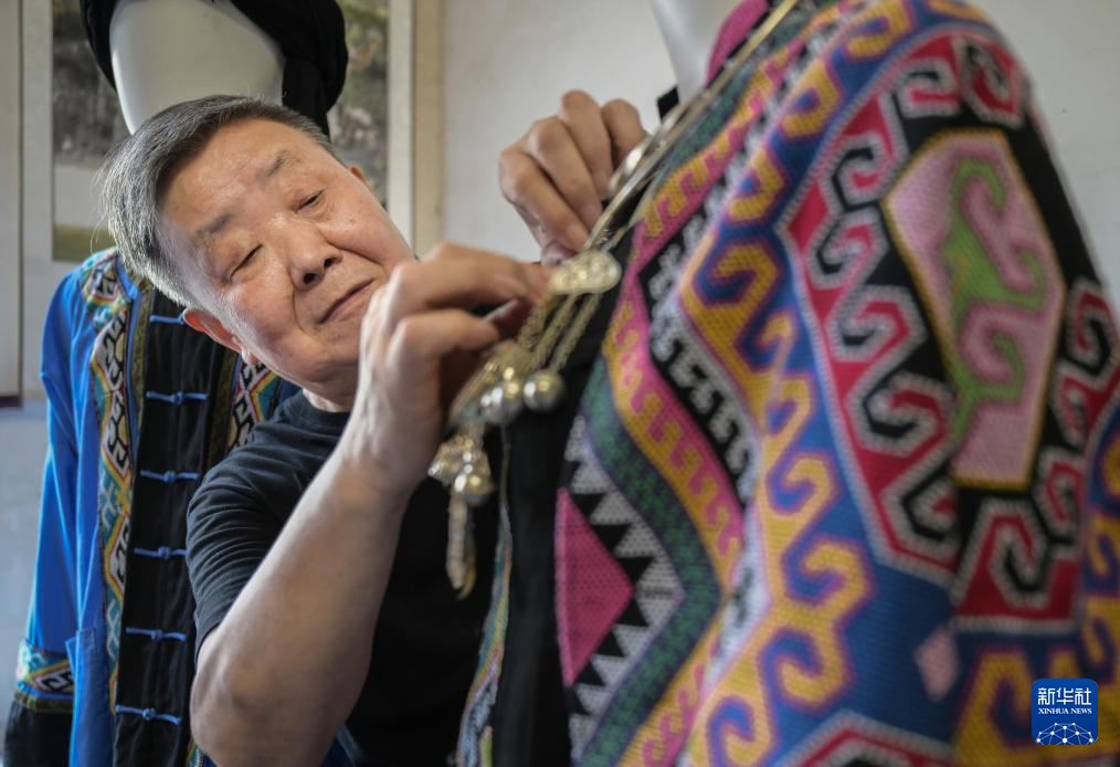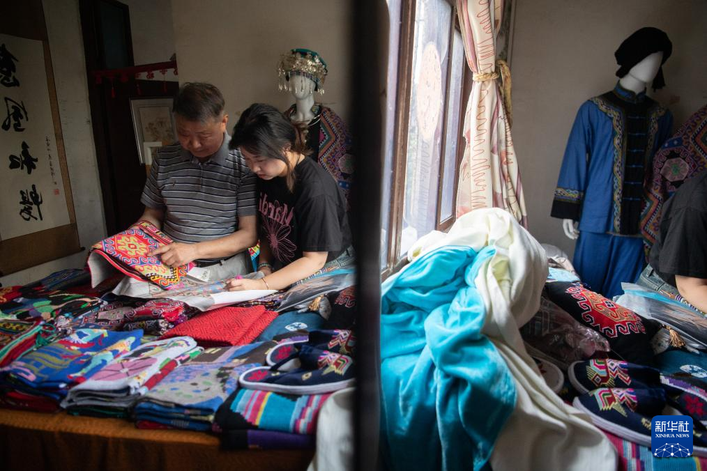 7月2日,唐洪祥整理用西兰卡普制作的土家服饰。