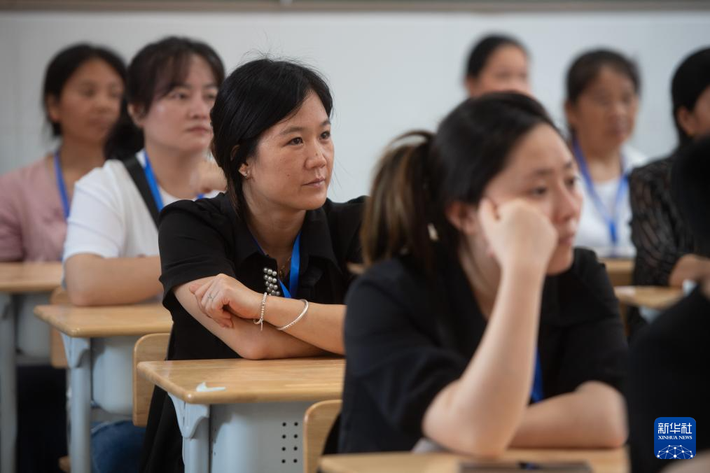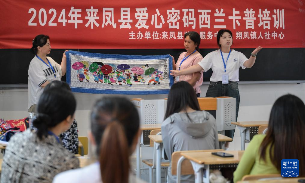 7月2日,湖北省来凤县高级中学,学员们在西兰卡普培训班听讲。唐洪祥的孙女唐鸣珂为学员们讲解西兰卡普的知识。