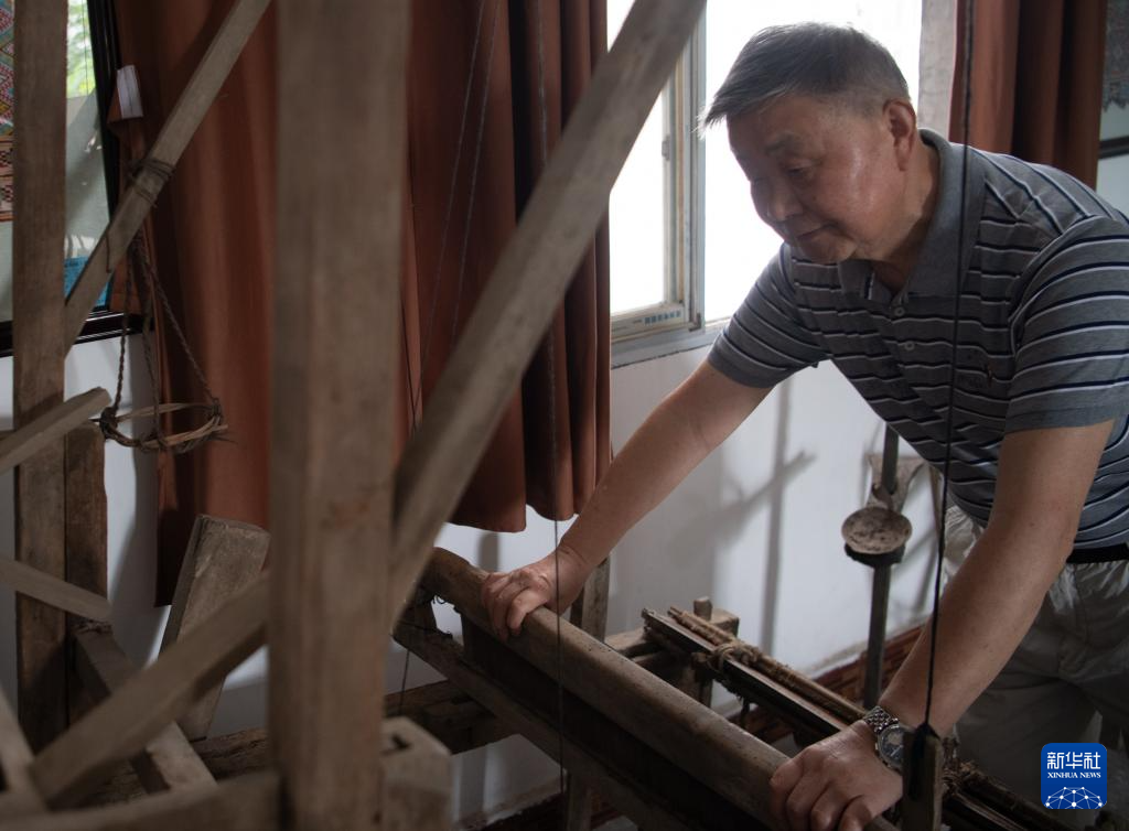 7月3日,唐洪祥检查织锦博物馆里收藏的清代木织机状况。