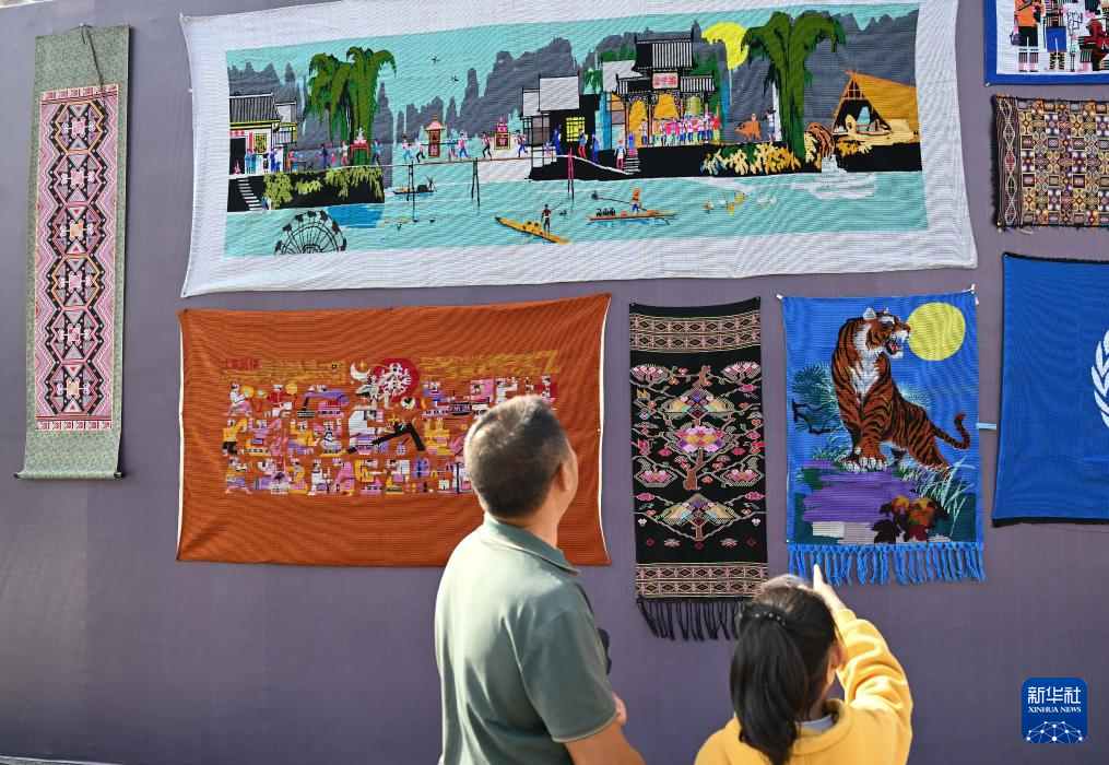 观众参观唐洪祥收藏的西兰卡普作品(2023年10月28日摄)。