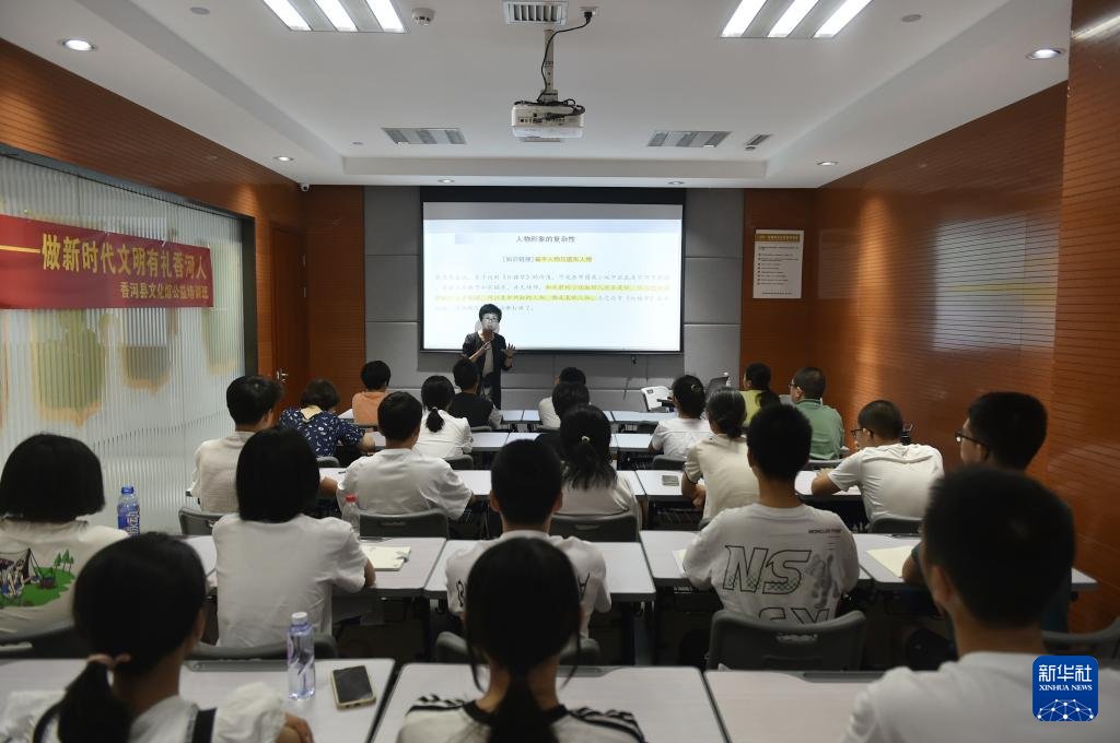 7月20日,授课老师在香河县文化馆的“少年作家培训班”上带领学员进行名著鉴赏。