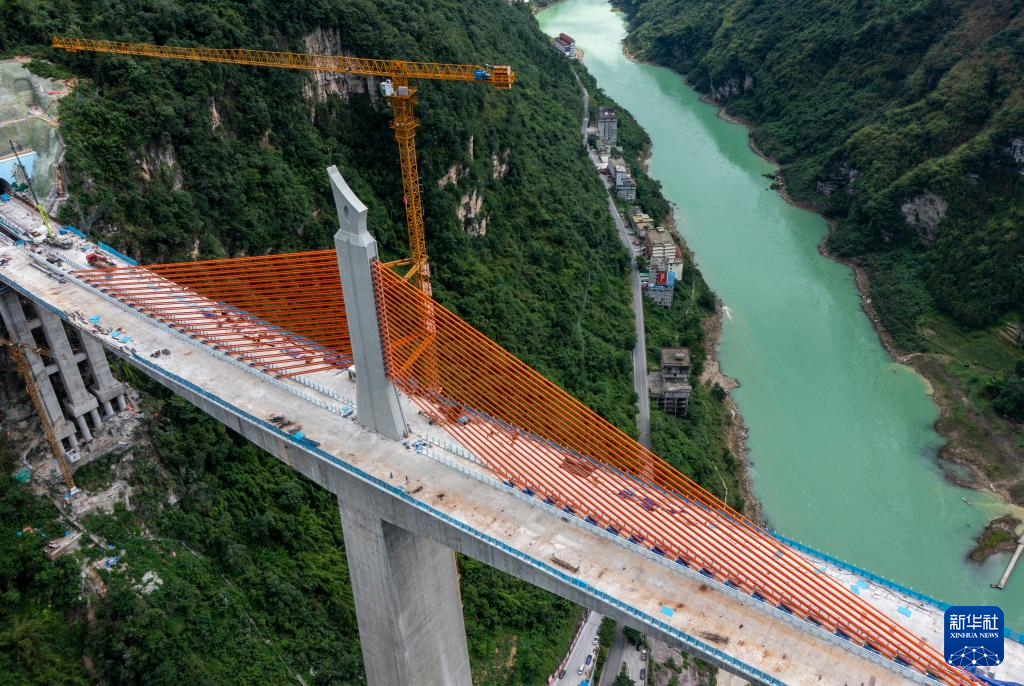 近日,由中国铁建承建的渝湘复线高速关键控制性工程——磨寨乌江特大桥全面进入桥面施工阶段。