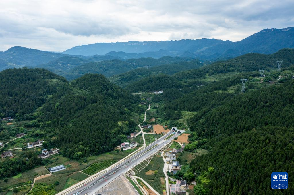 这是位于重庆市彭水县境内的渝湘复线高速建设现场(7月20日摄,无人机照片)。