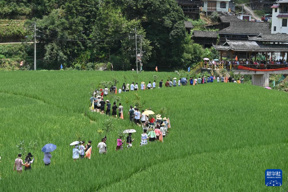 7月21日,在融水苗族自治县红水乡良双村,村民前去参加闹鱼节活动。今年,良双村利用粤桂协作资金,对河道进行了整治和改造,提升旅游基础设施条件。