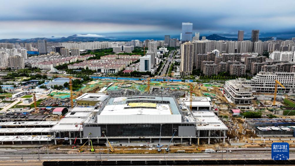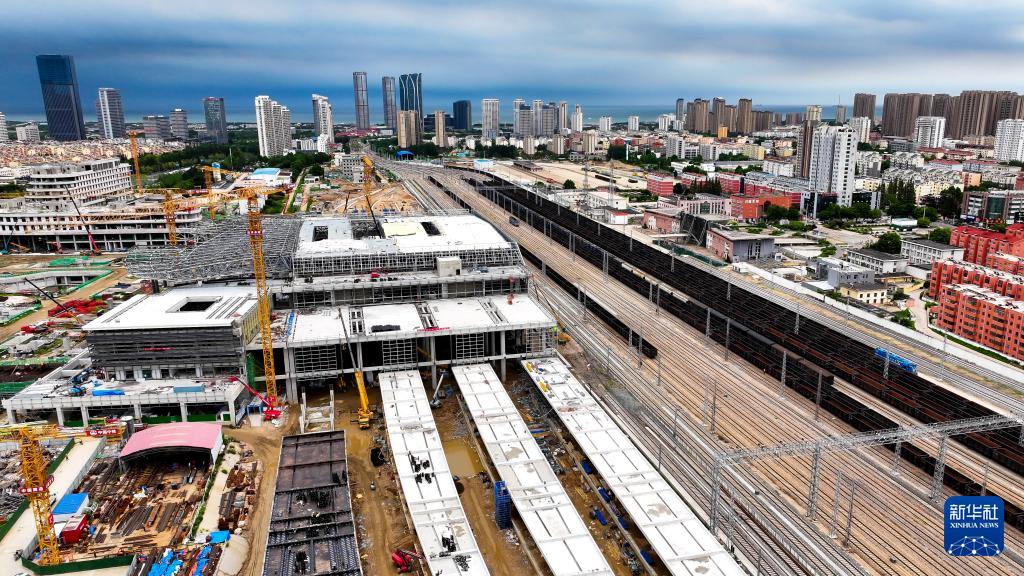 7月22日拍摄的日照火车站新建站房工程(无人机照片)。