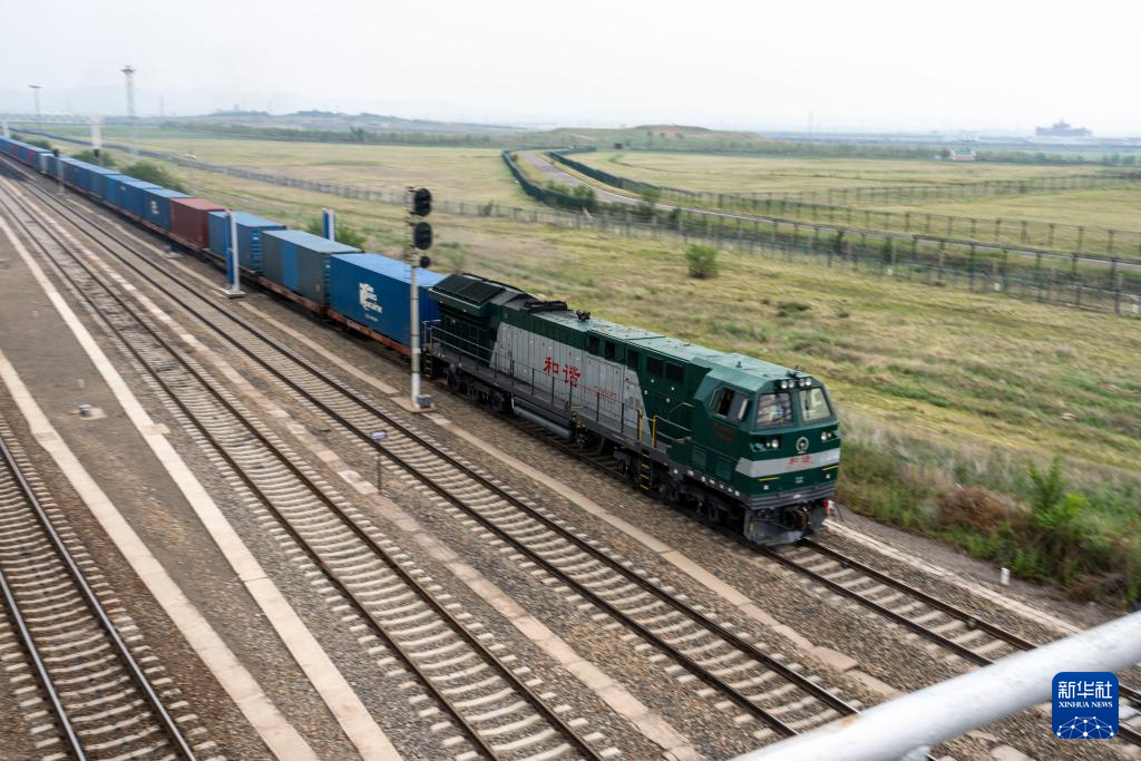 一列中欧班列货运列车由内蒙古满洲里铁路口岸出发(7月17日摄)。