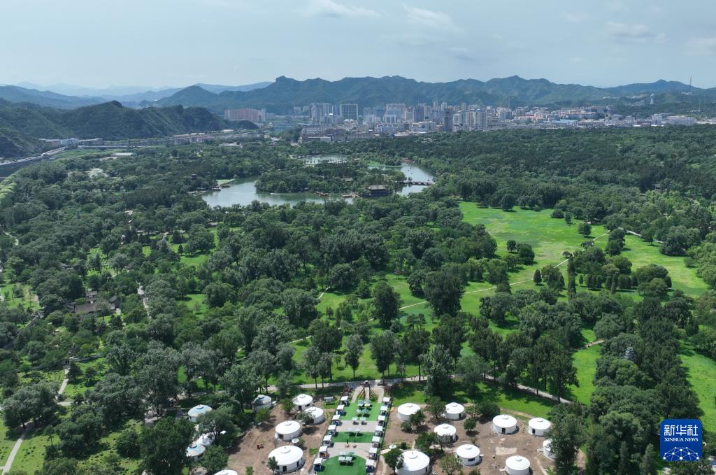 7月20日,游客在承德避暑山庄景区游览(无人机照片)。