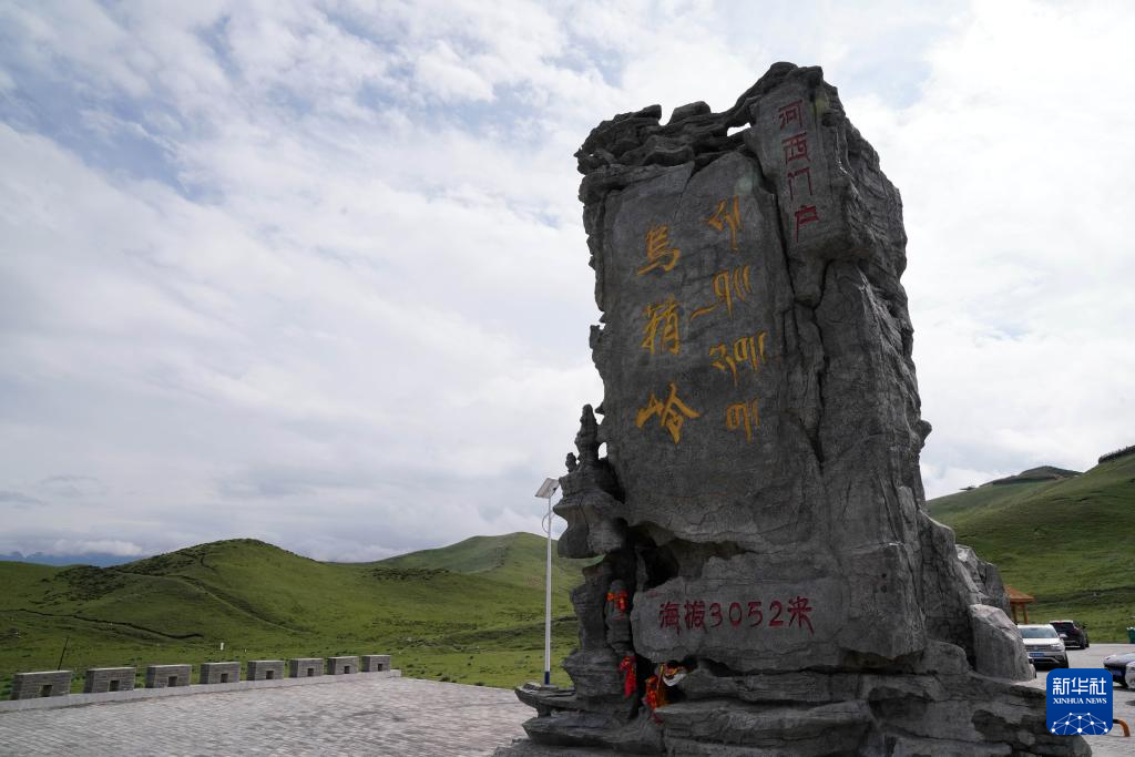 7月8日在乌鞘岭上拍摄的“河西门户乌鞘岭”石碑。