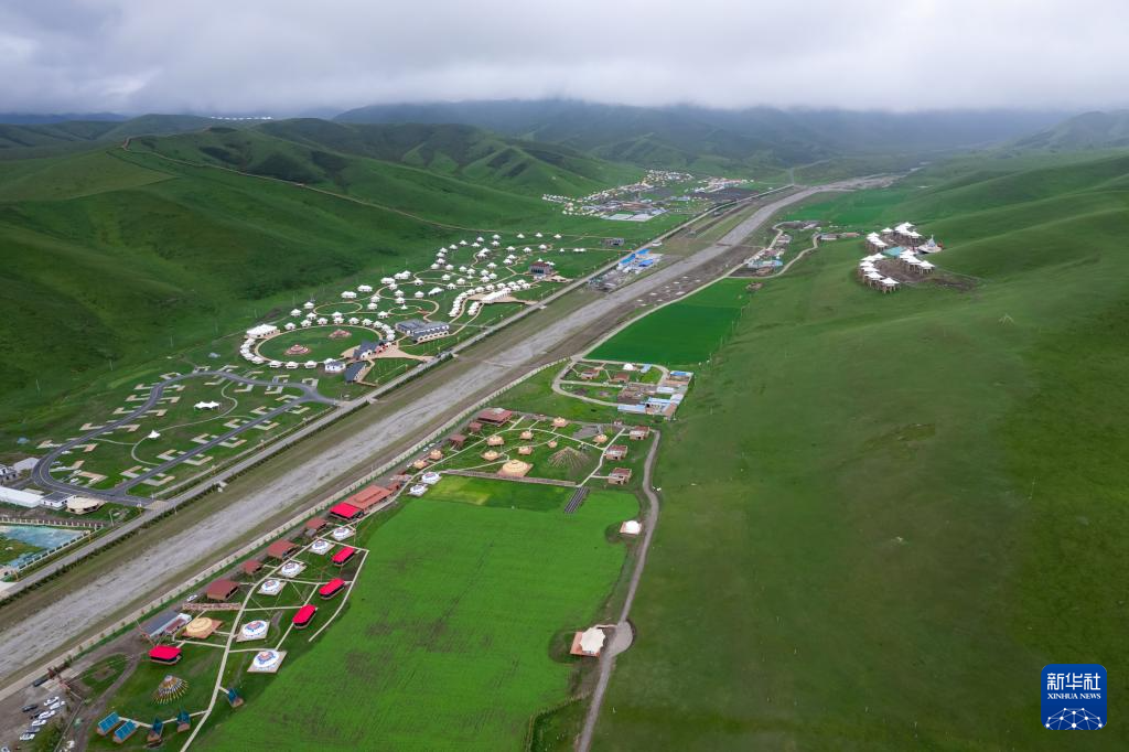 7月8日拍摄的乌鞘岭下的抓喜秀龙草原帐篷城(无人机照片)。