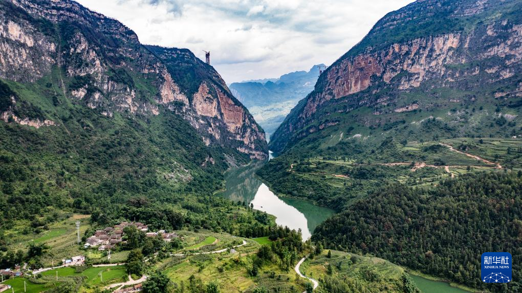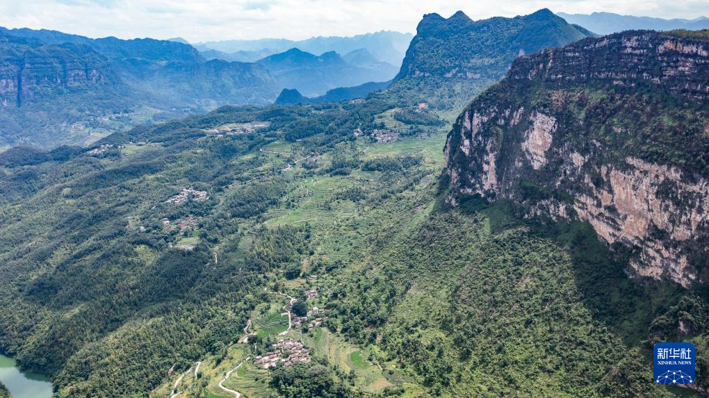 被群山围绕的天门村(7月17日摄,无人机照片)。