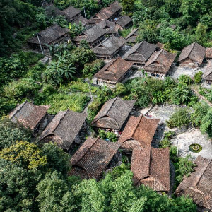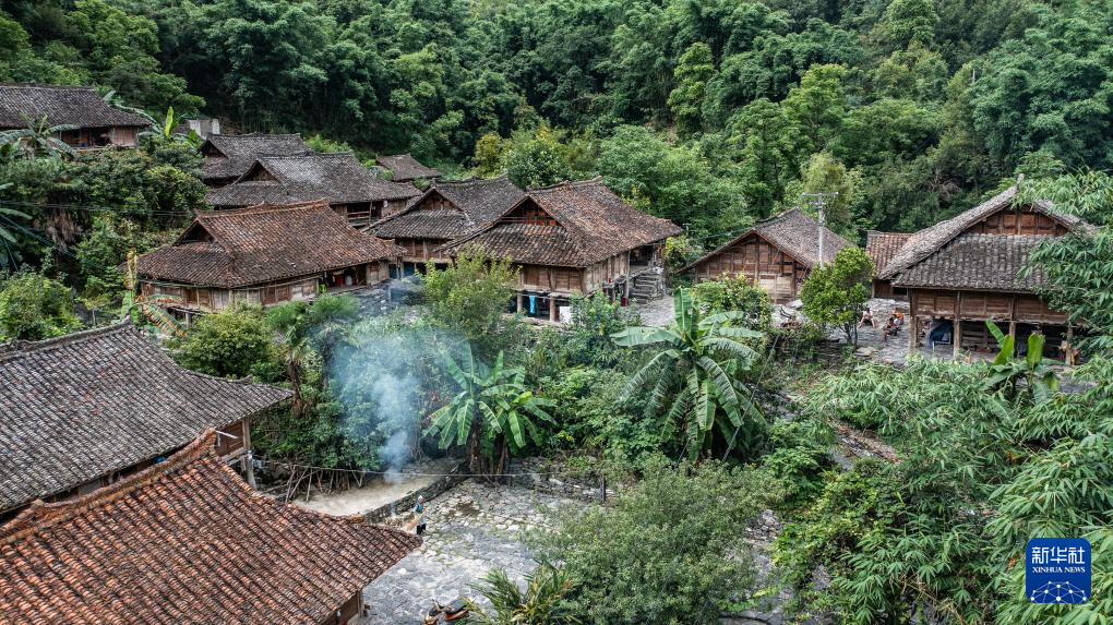 天门村小寨组的吊脚楼群一隅(7月17日摄,无人机照片)。