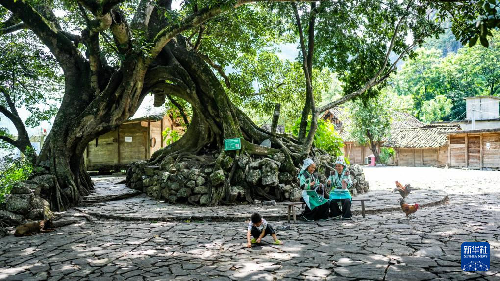 乌蒙大山磅礴,北盘江水奔腾。在乌蒙山腹地、北盘江畔的天门村,古朴的吊脚楼点缀于青山绿水间,远山、古树、梯田、民居构成了一幅山水田园画卷。