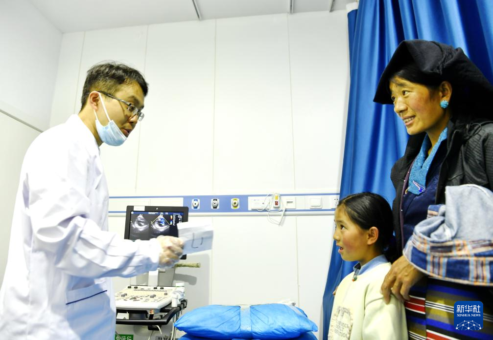 7月23日,南京医科大学附属儿童医院心胸外科主任戚继荣(左)在墨竹工卡县为儿童体检。