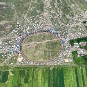 7月23日拍摄的拉萨甘丹曲果镇赛马场上的走马比赛(无人机照片)。