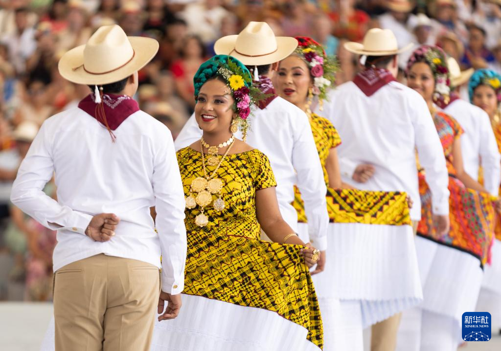 7月22日,在墨西哥瓦哈卡州瓦哈卡市盖拉盖查音乐厅,演员表演传统舞蹈。