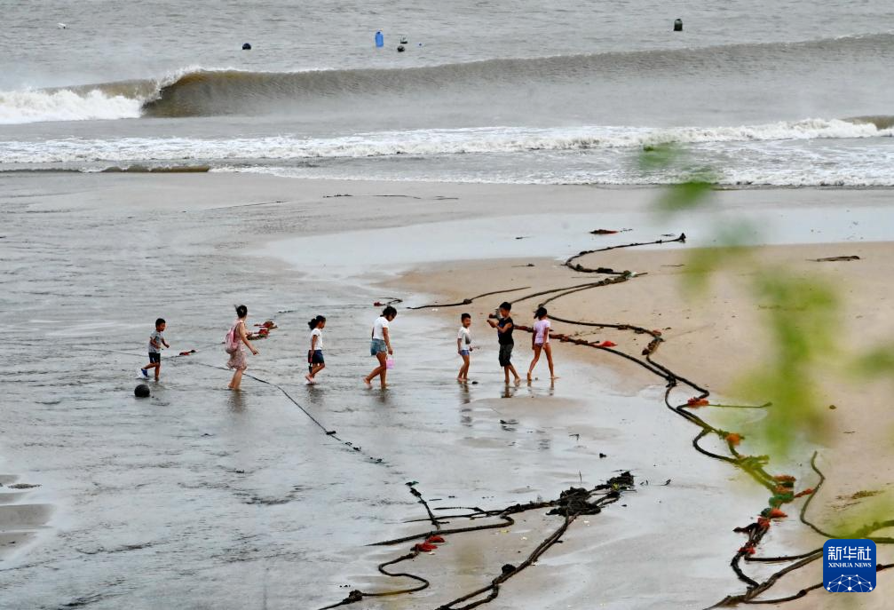 7月24日,游客从福建平潭坛南湾一处沙滩撤离。