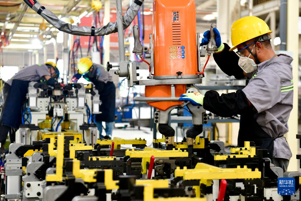 7月24日,在山东永利新能源车业有限公司,工作人员在流水线上生产高尔夫球车。