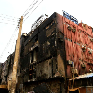 这是7月23日在苏丹首都喀土穆西部恩图曼市拍摄的一座遭焚毁的医院。