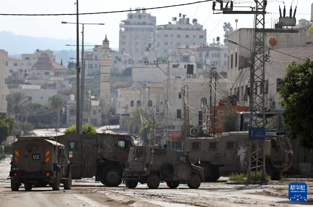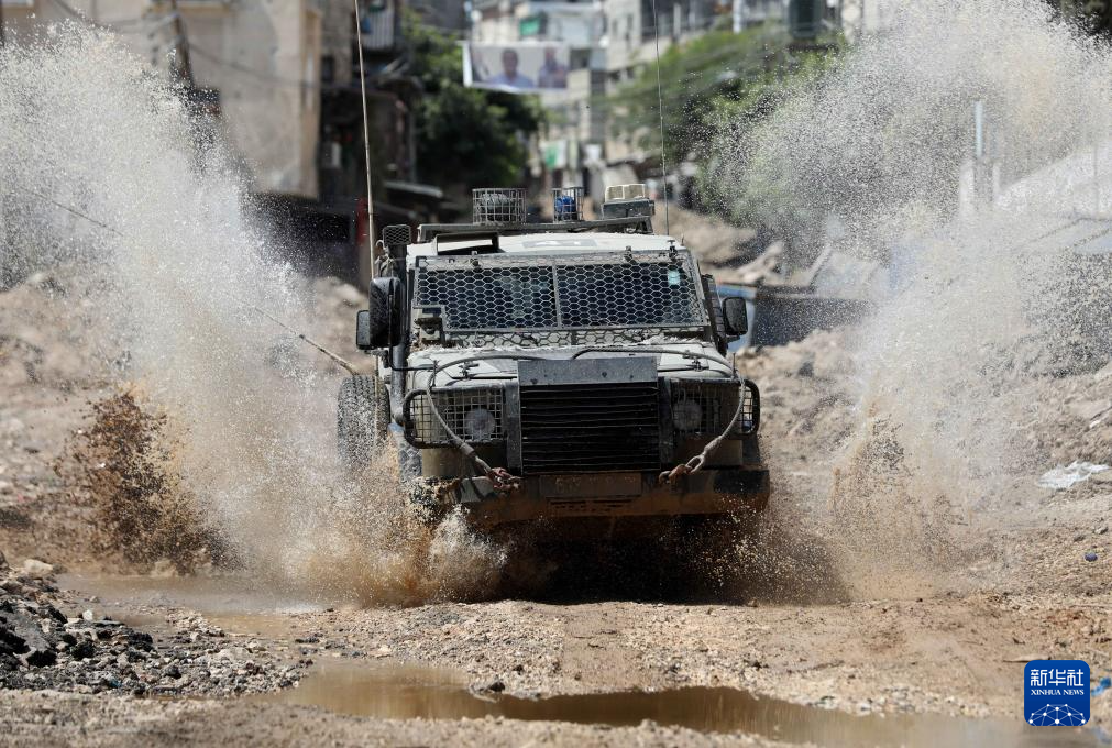 7月23日,在约旦河西岸北部图勒凯尔姆,以军汽车驶过街道。
