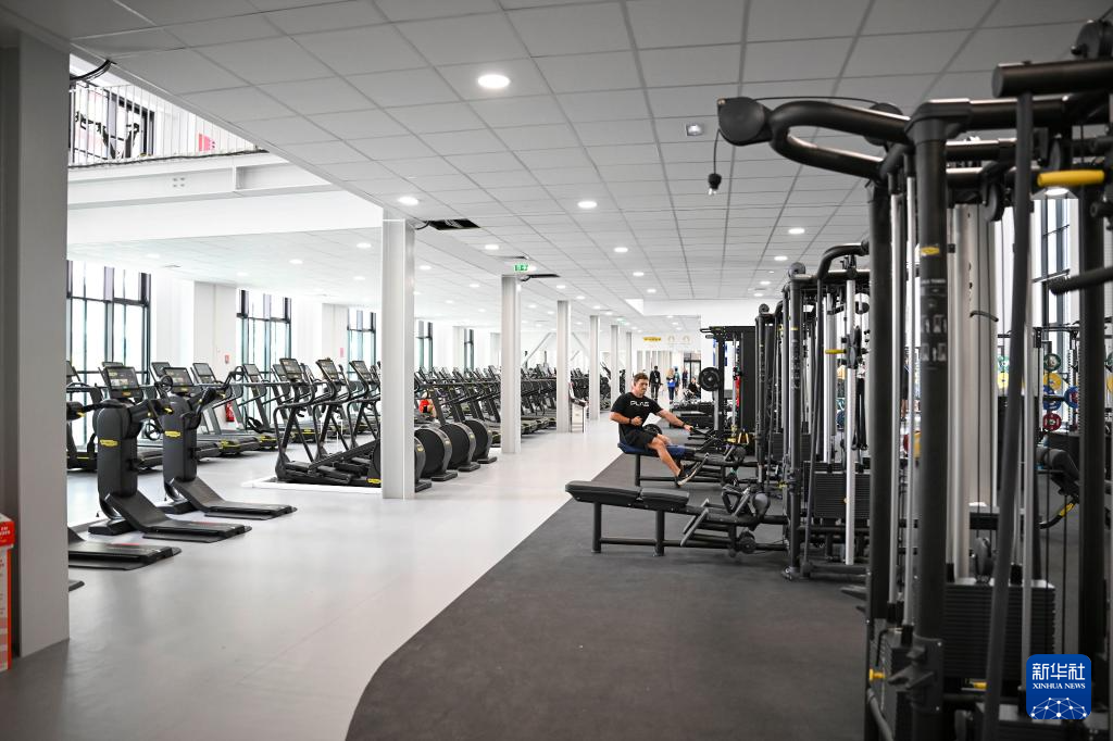 7月23日,运动员在巴黎奥运村内的健身中心锻炼。