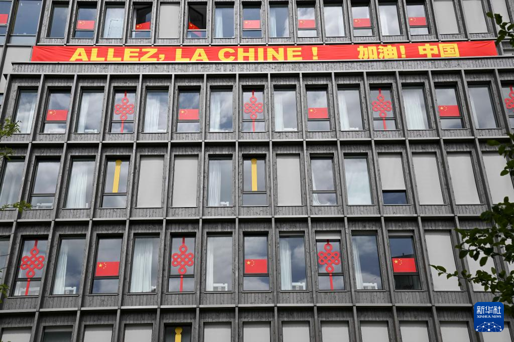 这是7月23日拍摄的巴黎奥运村内中国体育代表团成员居住的公寓。