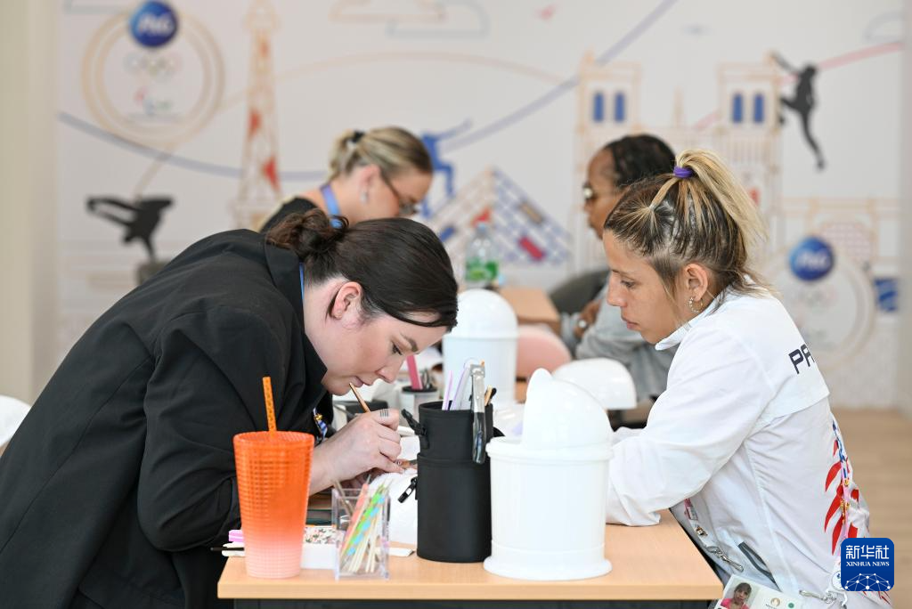 7月23日,运动员在巴黎奥运村内体验美甲服务。
