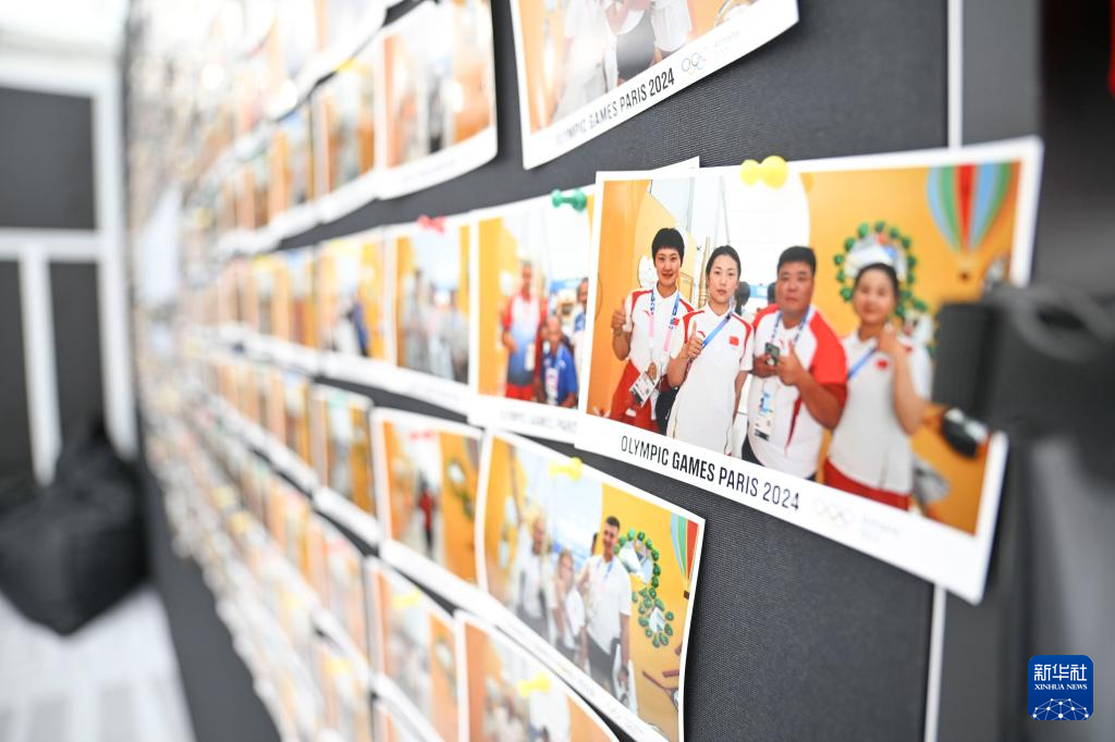 这是7月23日在巴黎奥运村内“运动员365小屋”拍摄的中国体育代表团成员合影。
