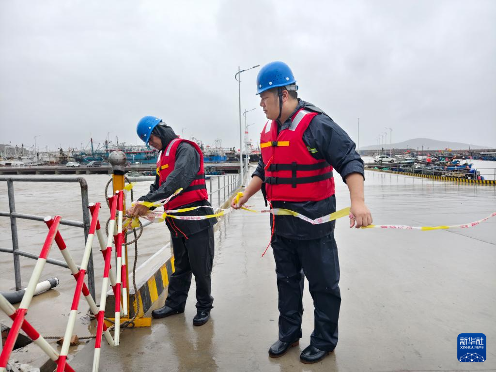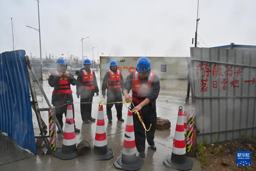 7月25日,福建省宁德市霞浦县三沙镇防台人员在港区码头值守。