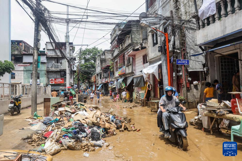 这是7月25日在菲律宾马里基纳市拍摄的洪水过后的街道。