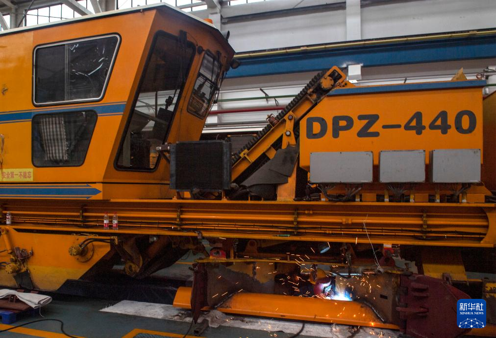 7月25日,在国铁北京局北京大型养路机械运用检修段的检修库,职工对配砟整形车进行焊修作业。