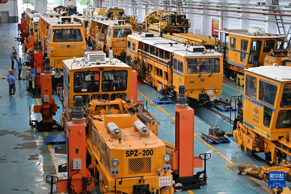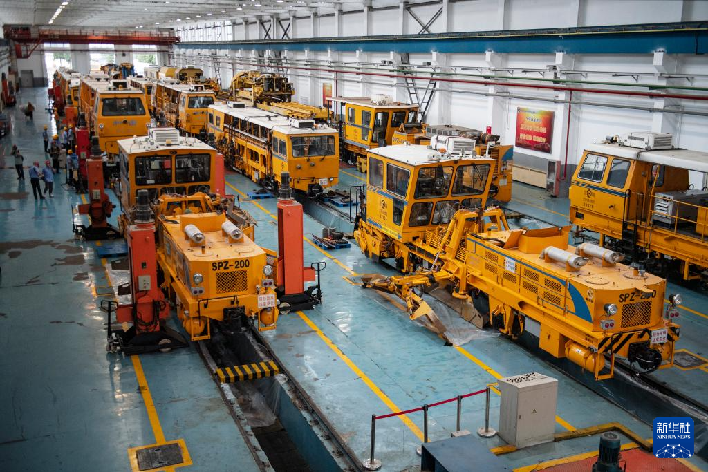 7月25日,在国铁北京局北京大型养路机械运用检修段,检修后的大型养路机械在检修基地内进行动态试验。