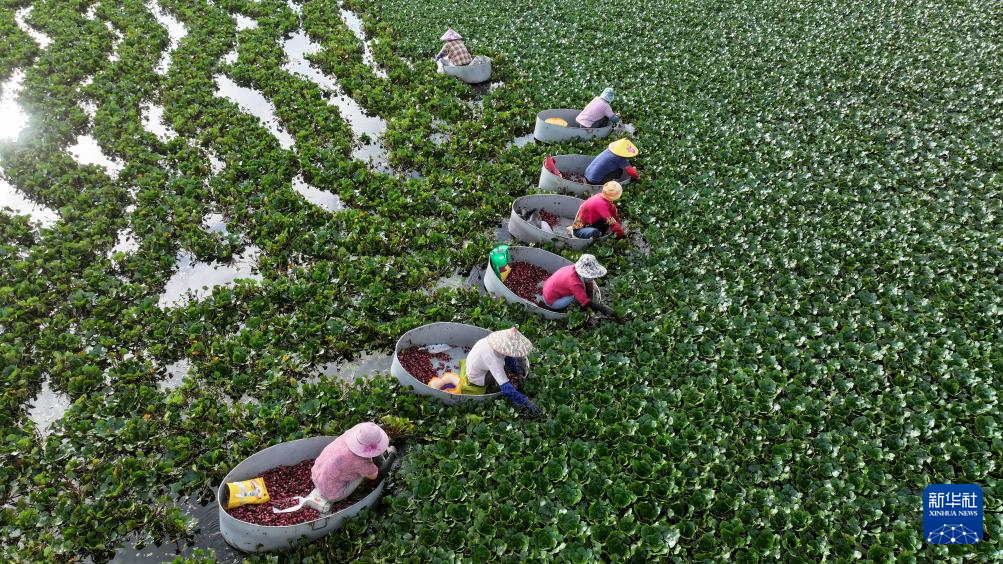 近年来,江苏省淮安市洪泽区岔河镇利用生态水域种植菱角,大力发展特色产业,助力农民增收致富。