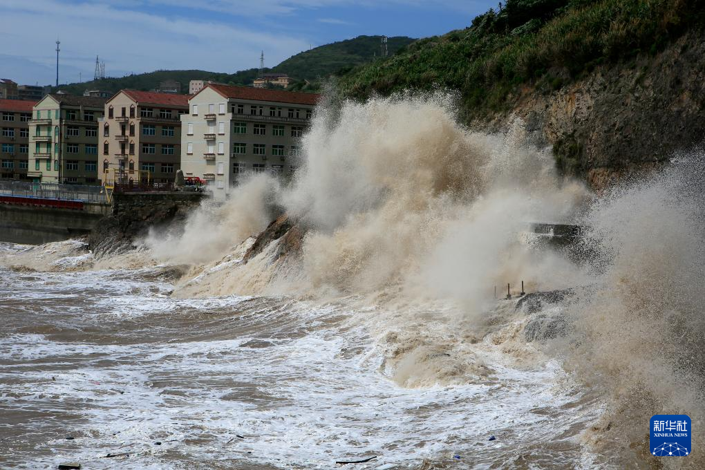7月25日,浙江省温岭市石塘镇金沙滩海域掀起巨浪。