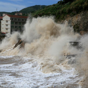 随着今年第3号台风“格美”逼近,叠加潮汐等因素,当日,浙江省温岭市石塘镇金沙滩海域掀起十多米高的巨浪。