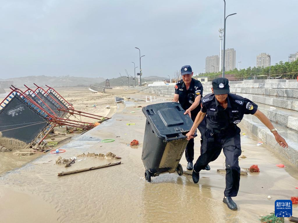 7月25日,安保工作人员在福建平潭的一处沙滩公园排除安全隐患。