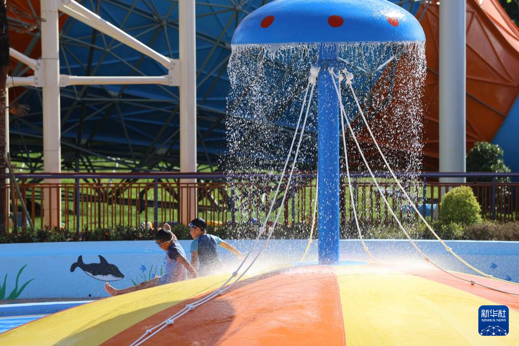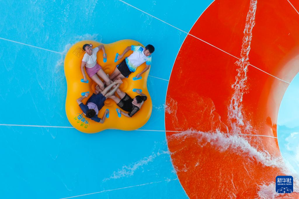 7月25日,游客在黟县西递石林水世界戏水、玩耍。