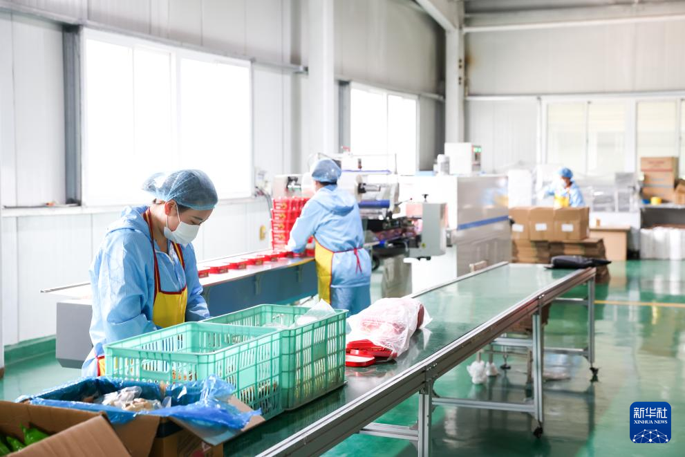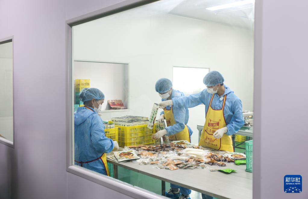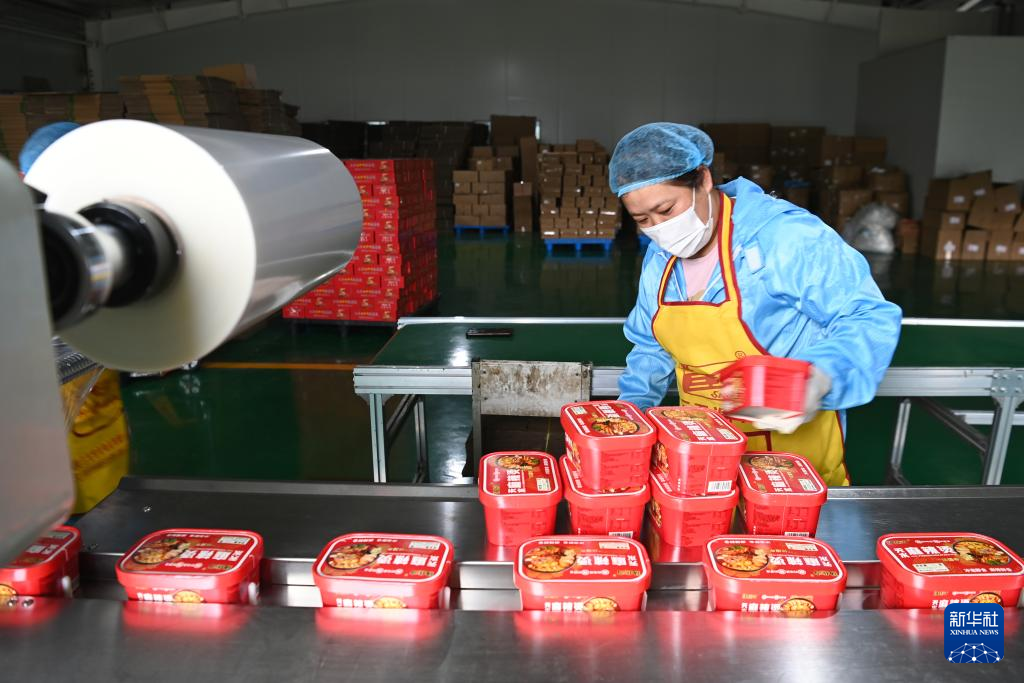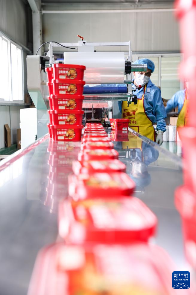 7月22日,工作人员在甘肃天水市一家麻辣烫企业车间内包装产品。