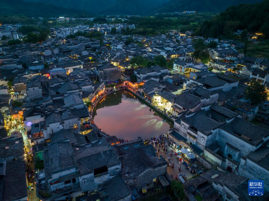 这是7月25日晚拍摄的黄山市黟县宏村月沼音乐会现场(无人机照片)。