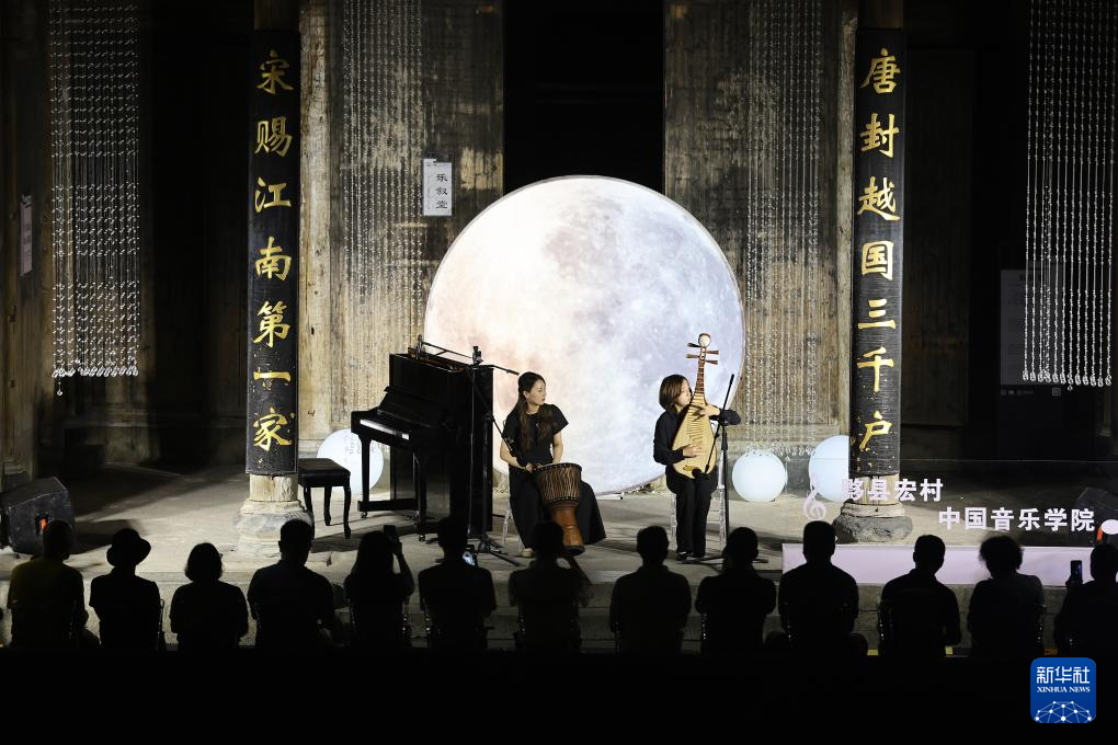 7月25日晚,一场音乐与自然和谐共鸣的“月沼乐夜”公益音乐会在安徽省黄山市黟县宏村上演。来自中国音乐学院“徽韵乡音 红心筑梦”实践团的15名师生通过声乐表演、器乐演奏等方式,尽情展示音乐的生动魅力,助力古村“夏日经济”。