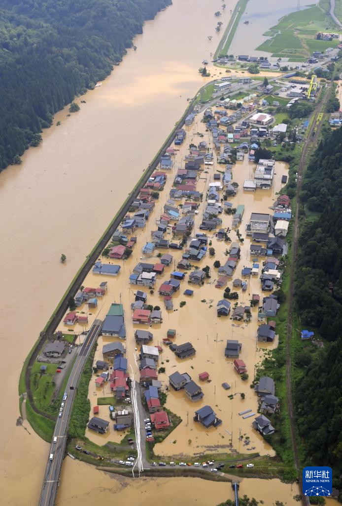 这是7月26日航拍的遭洪水侵袭的日本山形县户泽村。