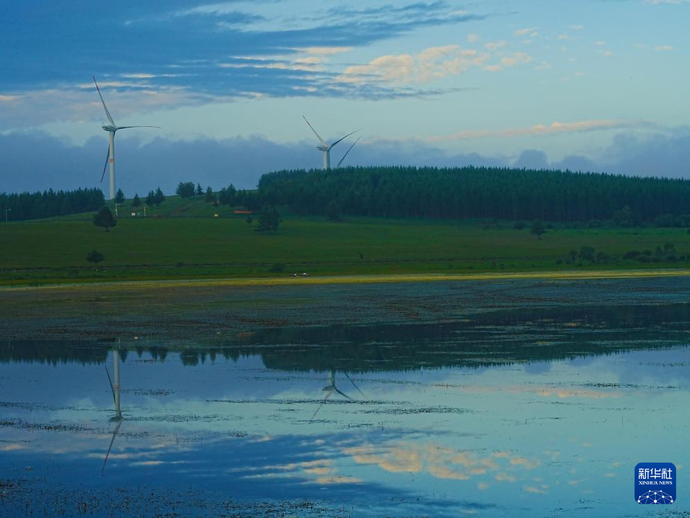 7月26日拍摄的河北省塞罕坝国家级自然保护区内的风电场景色。