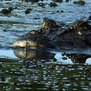 这是7月25日在斯里兰卡科特的迪亚萨鲁湿地公园拍摄的鳄鱼。