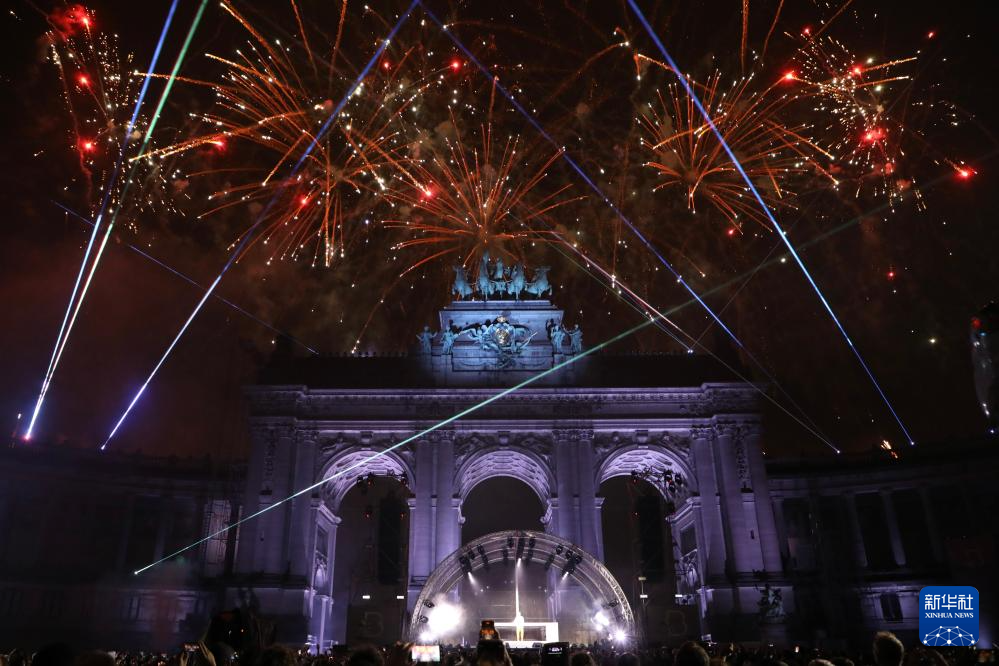 7月21日,烟花在比利时首都布鲁塞尔的五十周年纪念公园上空绽放。