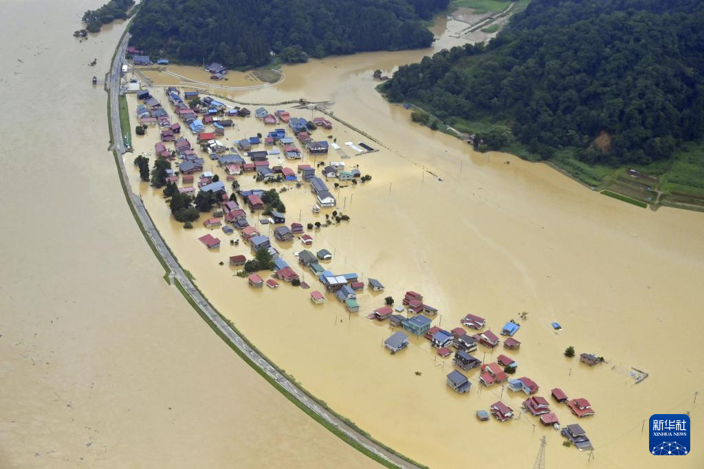 这是7月26日航拍的遭洪水侵袭的日本山形县户泽村。