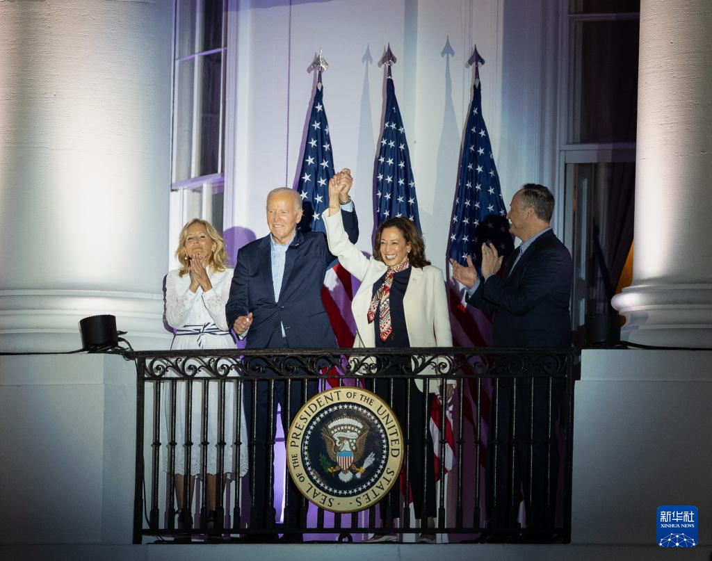 这是7月4日在美国首都华盛顿白宫拍摄的美国总统拜登(左二)和副总统哈里斯(右二)。