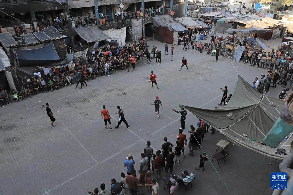 这是7月23日在加沙地带北部杰巴利耶难民营拍摄的足球赛现场。