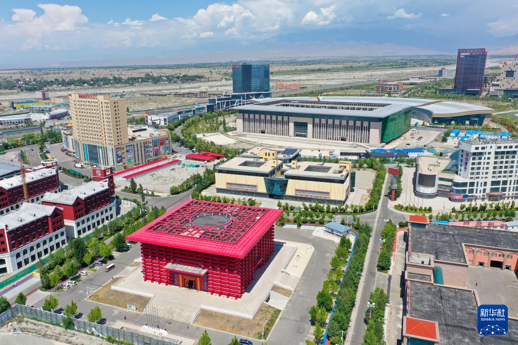 这是7月26日拍摄的中哈霍尔果斯国际边境合作中心一角(无人机照片)。