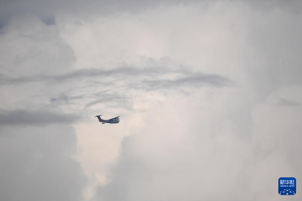 AG600飞机在陕西蒲城县进行试飞(7月17日摄)。