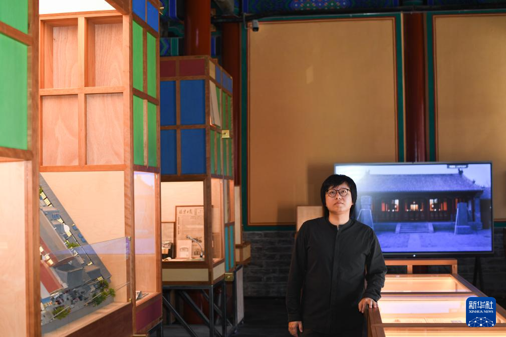 朱起鹏在《宏恩观:一座北京庙宇的故事》展厅内(7月19日摄)。朱起鹏是《宏恩观:一座北京庙宇的故事》的策展人。2024年年初,位于钟楼北侧,完成腾退修缮的宏恩观开门迎客。常设展《宏恩观:一座北京庙宇的故事》用近百件展品,讲述这座始建于元代的古庙所经历的时空变迁。作为一名建筑师,朱起鹏曾主持设计过多处世界遗产项目的配建设施。2012年起,他把目光投向与北京中轴线相接的宏恩观,通过测绘复原、搜集老照片和物件,揭开这座庙宇被尘封的老故事。在他看来,北京中轴线申遗带动了老城整体性保护,不少像宏恩观这样的文物正一步步重获新生。