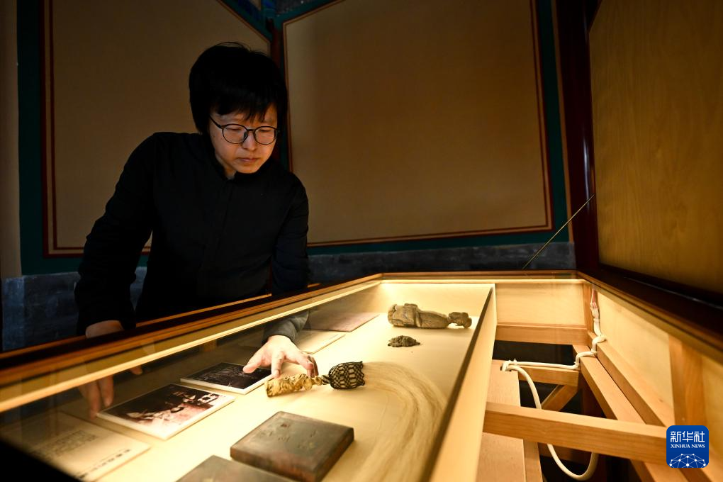 朱起鹏在《宏恩观:一座北京庙宇的故事》展厅内整理展品(7月19日摄)。朱起鹏是《宏恩观:一座北京庙宇的故事》的策展人。2024年年初,位于钟楼北侧,完成腾退修缮的宏恩观开门迎客。常设展《宏恩观:一座北京庙宇的故事》用近百件展品,讲述这座始建于元代的古庙所经历的时空变迁。作为一名建筑师,朱起鹏曾主持设计过多处世界遗产项目的配建设施。2012年起,他把目光投向与北京中轴线相接的宏恩观,通过测绘复原、搜集老照片和物件,揭开这座庙宇被尘封的老故事。在他看来,北京中轴线申遗带动了老城整体性保护,不少像宏恩观这样的文物正一步步重获新生。